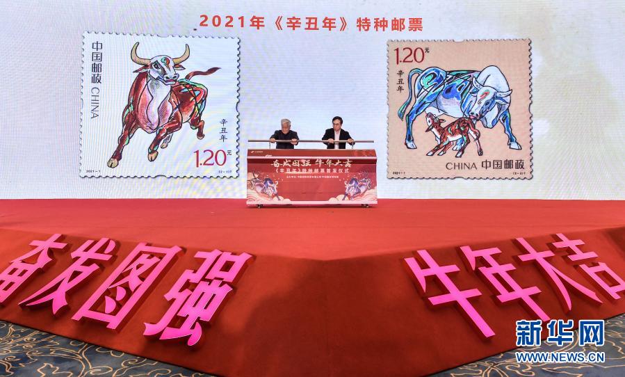 當日,中國郵政發行《辛丑年》特種郵票1套2枚,圖案分別為“奮發圖強”“牛年大吉”。