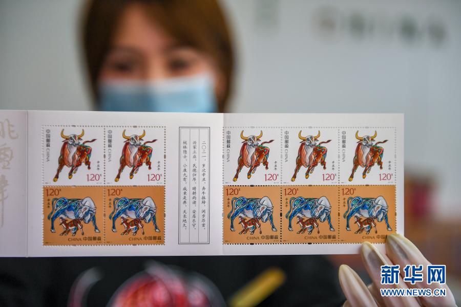 1月5日,在長春郵政站前集郵專賣店,工作人員展示《辛丑年》特種郵票。