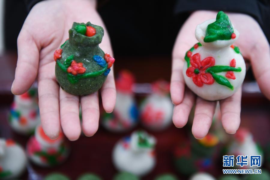 1月5日拍攝的制作好的“歡喜團”。這種糕點由糯米包裹棗制成。