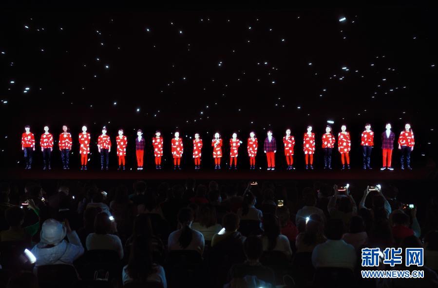 1月5日在發(fā)布會(huì)現(xiàn)場拍攝的意大利安東尼亞諾小合唱團(tuán)的全息演出展示。