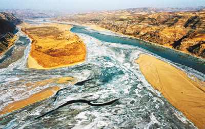 1月19日,冰封的黃河陜西榆林佳縣段。新華社記者 陶 明攝 人民日報北京1月19日電 (記者常欽)近日,受低溫天氣影響,黃河多處河段進入封河階段,目前黃河凌情整體平穩(wěn)。預(yù)計凌汛期影響黃河流域的冷空氣頻繁,黃河封河長度長、封凍冰蓋厚。 水利部門持續(xù)抓好各項防凌工作,密切關(guān)注凌情變化,充分利用衛(wèi)星遙感、自動水情測報等科技手段,強化監(jiān)測預(yù)報預(yù)警;精細調(diào)度小浪底等水庫,盡可能為春灌及生態(tài)用水儲備水源,為凌情平穩(wěn)發(fā)展創(chuàng)造有利條件;強化巡查防守和應(yīng)急值守,做好應(yīng)對突發(fā)凌情險情的準(zhǔn)備。 |