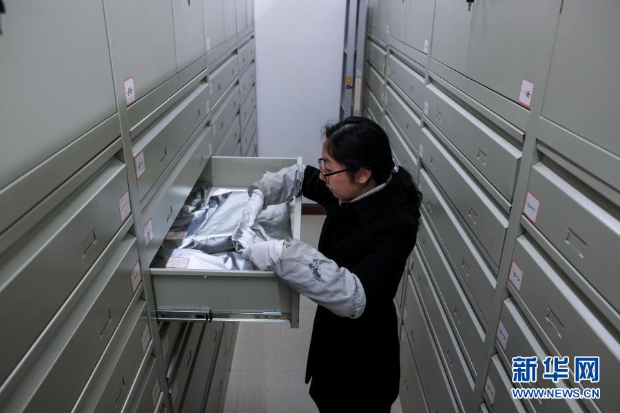 1月26日,李若雪在庫房內整理文物。新華社記者 歐東衢攝