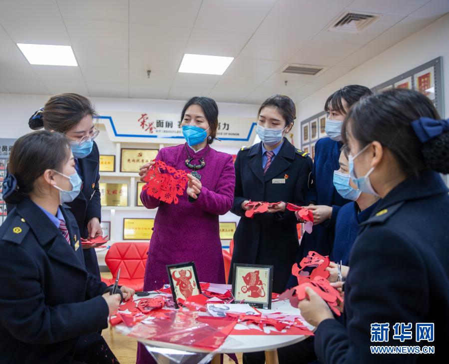 非遺剪紙進(jìn)鐵路 送福納祥迎新春