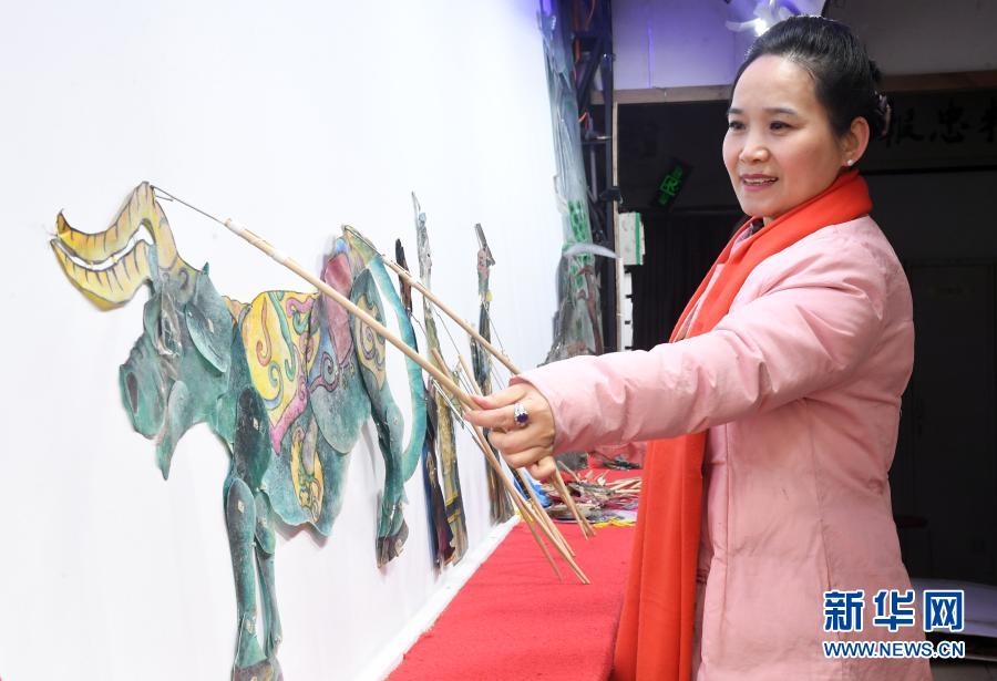 2月3日, 在位于北京市海淀區的中國京西皮影非遺園,京西皮影傳承人王熙展示皮影戲表演。