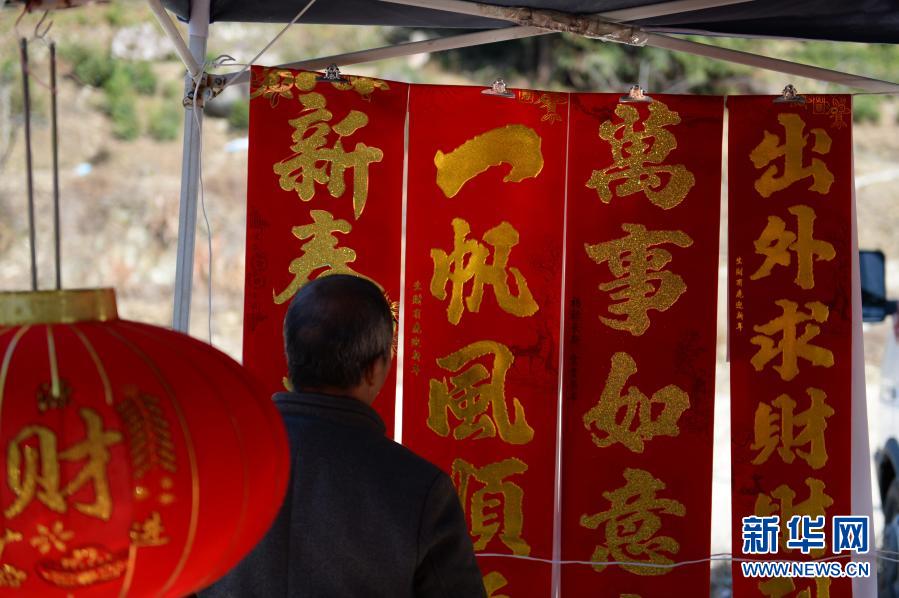 2月6日,平樂村村民在挑選對聯。新華社記者 陳振海 攝