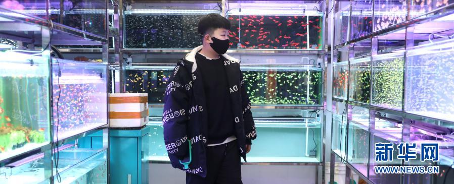 2月6日,一名少年在鞍山市三臺子觀賞魚交易中心里觀看選購觀賞魚。新華社記者 姚劍鋒 攝