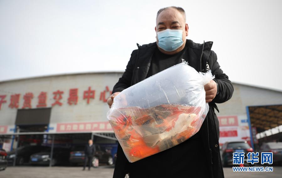 2月6日,一名消費者購買觀賞魚后走出交易中心。新華社記者 姚劍鋒 攝