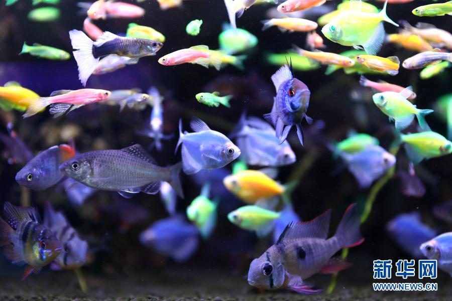 2月6日拍攝的鞍山市三臺子觀賞魚交易中心一家店鋪里展銷的觀賞魚。新華社記者 姚劍鋒 攝
