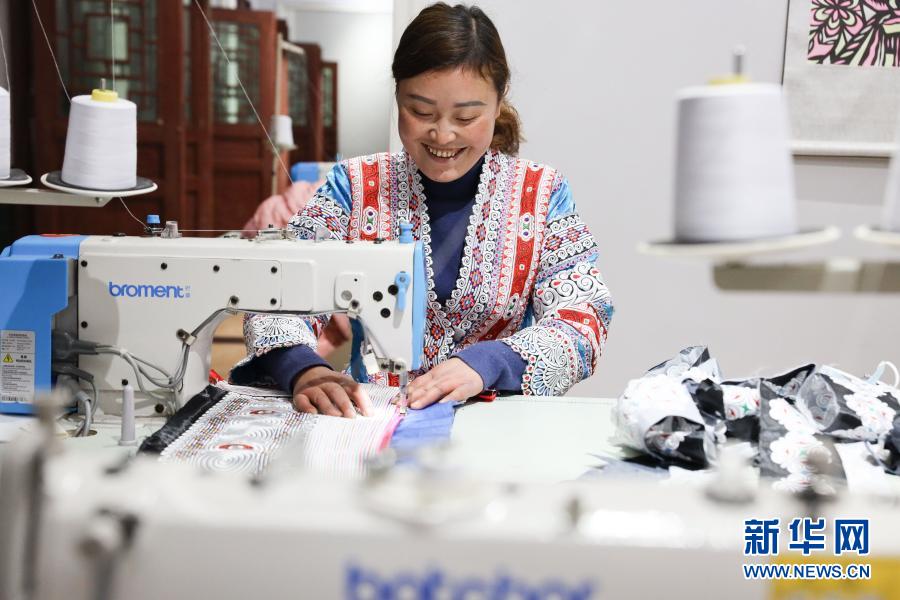 2月3日,畢節市黔西縣新仁苗族鄉化屋村村民在扶貧車間內加工衣服。新華社記者 歐東衢 攝