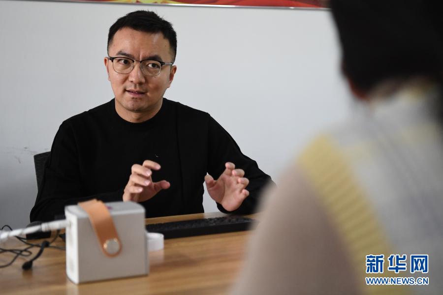 馬成虎和同事交流敦煌壁畫樂器復(fù)原(1月14日攝)。新華社記者 陳斌 攝
