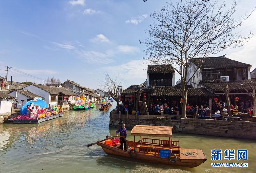 人們在上海楓涇古鎮游覽觀光(2月14日攝)。