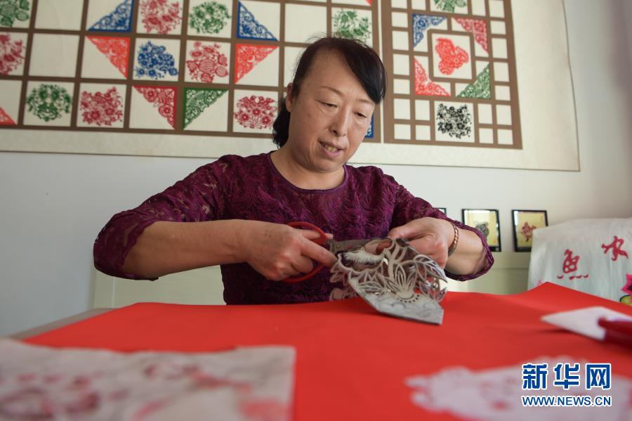 2月21日,在烏海市海南區新橋花園,李華在家中剪紙。新華社記者 李志鵬 攝