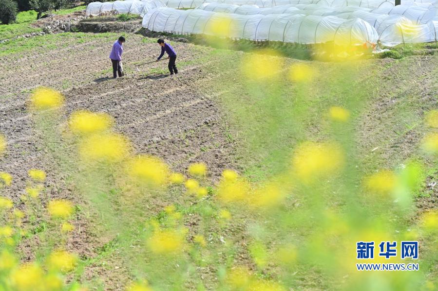 2月19日,在福建省福州市閩清縣白中鎮普賢村,農民在田間翻土準備種植花卉。