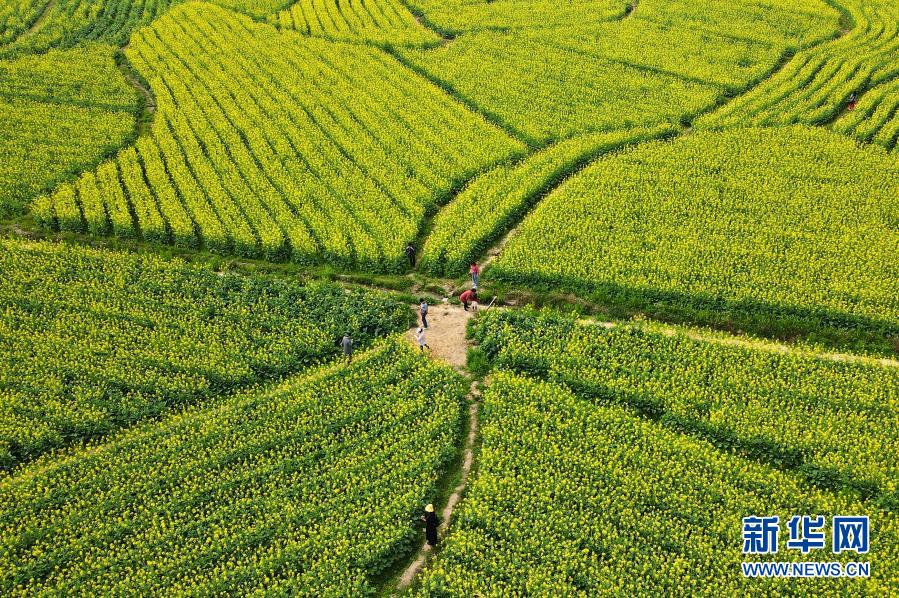 這是2月23日拍攝的閩侯縣鴻尾鄉(xiāng)鴻尾村的油菜花種植示范基地(無人機(jī)照片)。新華社記者 魏培全 攝