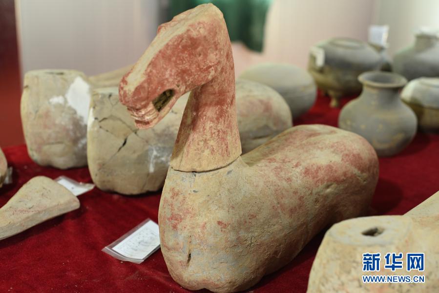 這是黃河孟津會盟段河道內古墓群出土的陶馬(2月23日攝)。新華社發(洛陽市文物考古研究院提供)