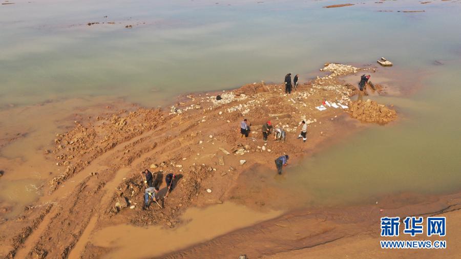 這是黃河孟津會盟段河道內古墓群發掘現場(1月30日攝,無人機照片)。新華社發(洛陽市文物考古研究院提供)