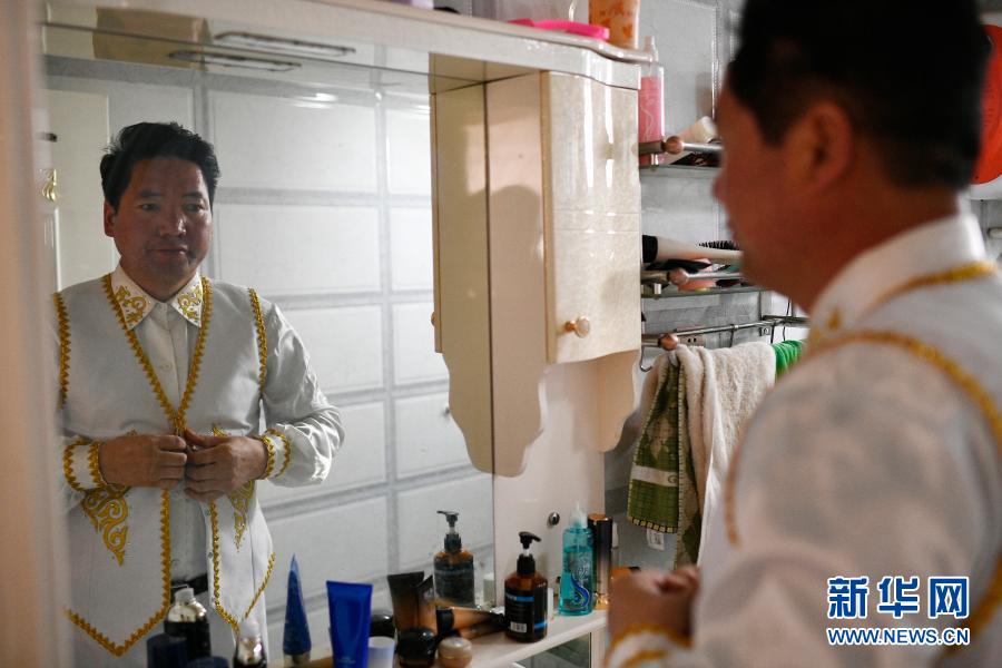 2月23日,馬瑞峰在家中穿上演出服裝,準備網絡直播。 馬瑞峰出生于寧夏西海固山區——吳忠市同心縣王團鎮白土崾峴村。在家鄉的山溝溝里,祖輩們放羊時哼唱的“花兒”是他對故鄉最深的記憶,耳濡目染下,他練就了一副好嗓子。 因家境貧寒,馬瑞峰18歲那年就開始打工漂泊,輾轉甘肅、青海、陜西等近10個省區,在挖水渠、鋪路、跑建筑之余,他經常為工友們唱“花兒”,放松解悶。 通過努力,馬瑞峰一步步走出大山,2015年在同心縣城買了房,日子越過越好。 隨著網絡直播興起,熱愛歌唱的馬瑞峰開始“花兒”直播,并走進校園為中小學生免費傳授“花兒”演唱技巧。馬瑞峰說,兒時“花兒”大多唱的是苦難生活。現在生活好了,“花兒”成為我們歌唱幸福生活的最好方式。 “花兒”是流傳在中國西北的一種獨具風采的高腔山歌,曲調高亢悠揚,起伏跌宕,被列入世界非物質文化遺產名錄。 新華社記者 唐如峰 攝 |