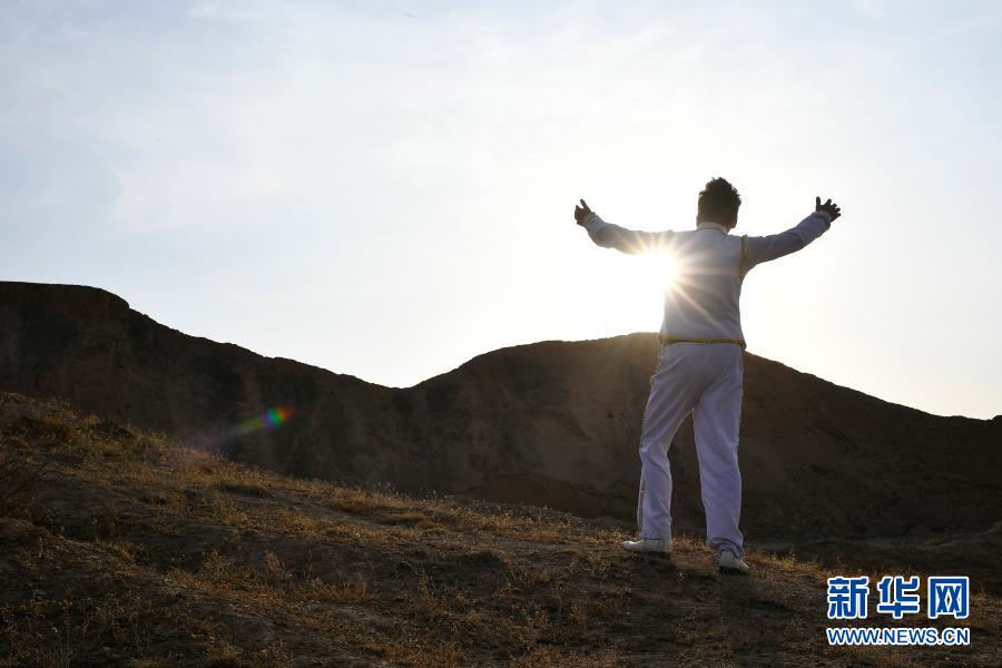 2月23日,馬瑞峰在家鄉的山頭高唱自編的“花兒”《百姓的生活比蜜甜》。
