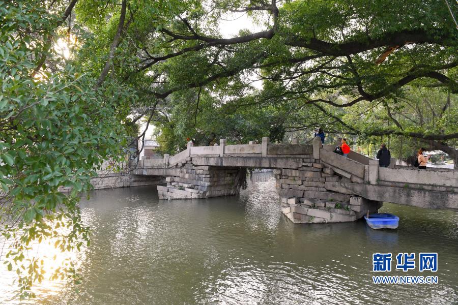 這是2月21日拍攝的福州萬壽橋。橋旁綠樹成蔭,使這里成為臨近居民和游客避暑遮陰的好去處。新華社記者 林善傳 攝