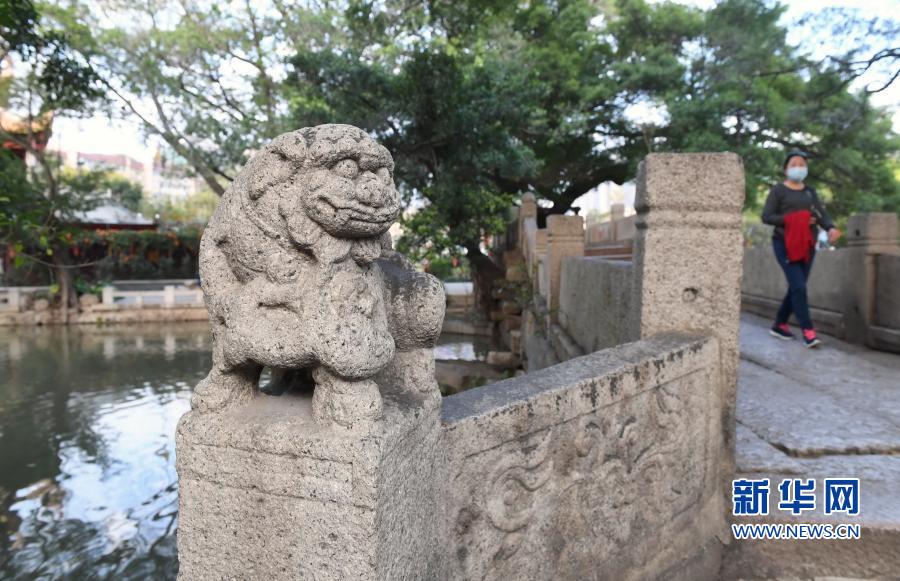這是福州萬壽橋上的石雕(2月21日攝)。新華社記者 林善傳 攝