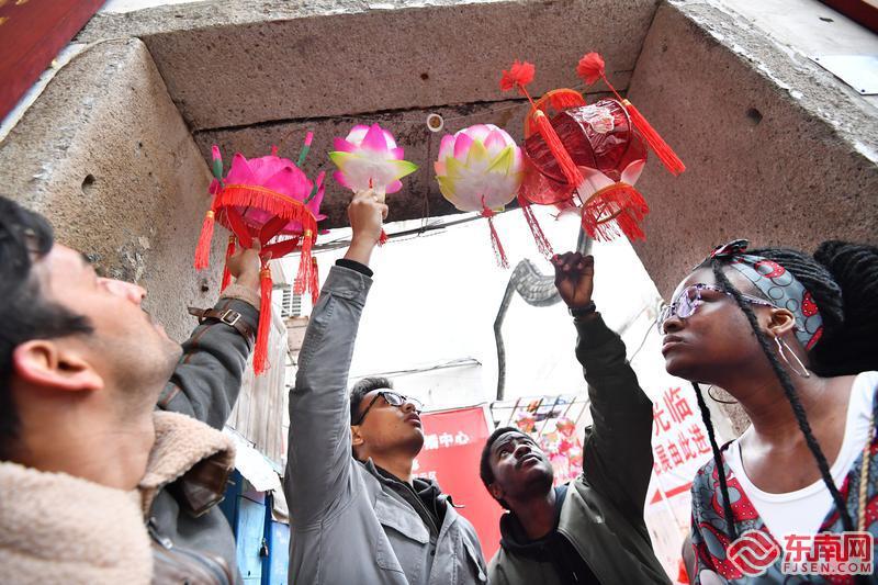 24日,元宵節將至,福州外語外貿學院來自利比里亞、尼泊爾等國的留學生走進福州三坊七巷,體驗元宵花燈制作技藝,了解中國元宵節民俗,感受中華傳統文化的魅力。福建日報記者 林輝 攝