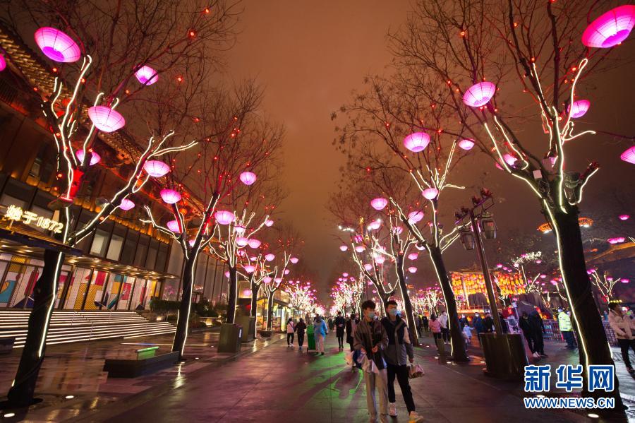 2月24日,陜西西安大唐不夜城步行街的樹上掛滿了彩燈。