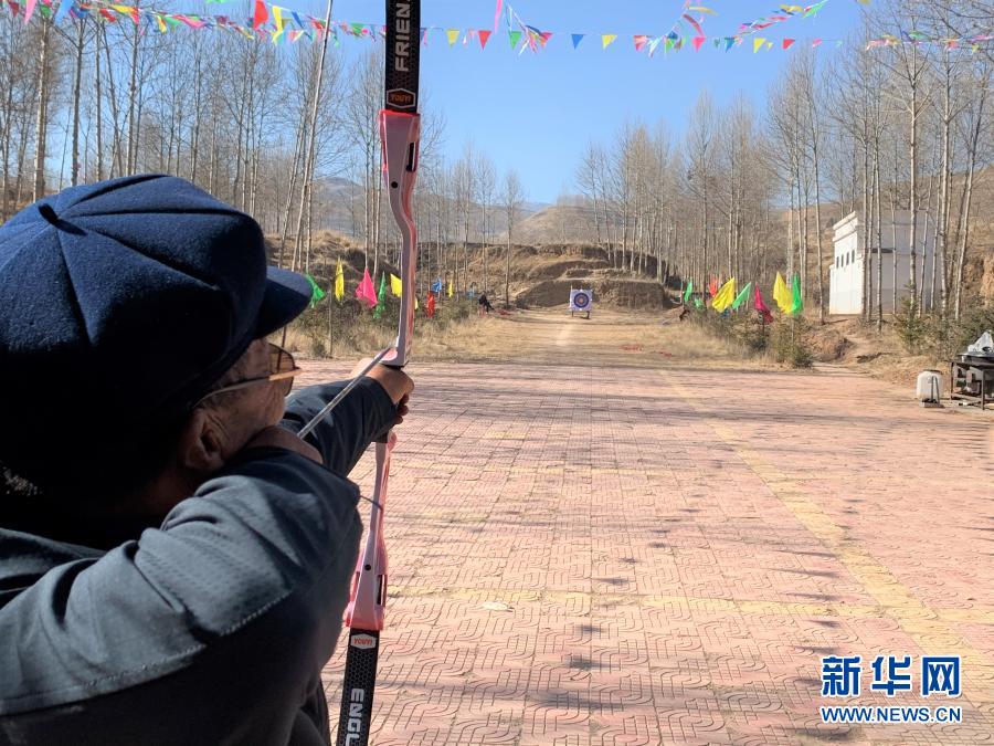 2月23日,祁玉德在木場村射箭場射箭。