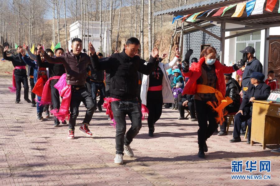 2月23日,在木場村射箭場,村民們跳舞迎客。