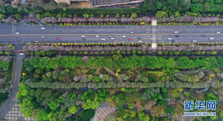 近日,廣西柳州市洋紫荊陸續(xù)盛開,市區(qū)近百條街道和多個公園、小區(qū)逐漸變成花的海洋。洋紫荊是柳州市市花,柳州市區(qū)共種植洋紫荊28萬株。