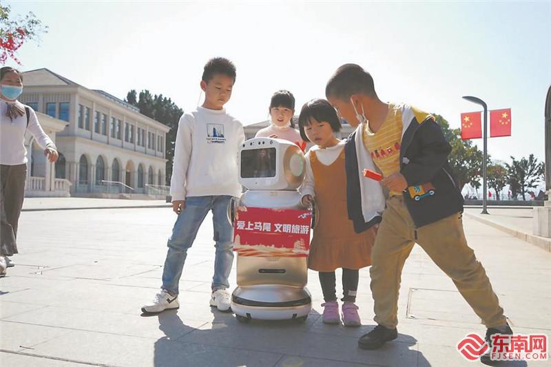 游客與AI機器人合影。福建日報記者段金柱 吳旭濤 通訊員 王曉霞 吳丹紅 章盈旖 攝