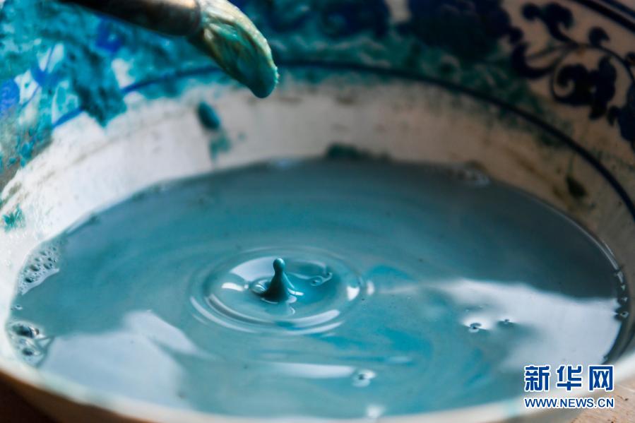 葛原生在工作室配制孔雀藍(lán)的釉料(3月3日攝)。新華社記者 曹陽 攝