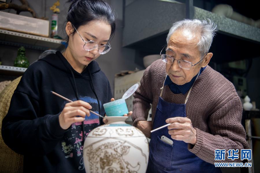 葛原生(右)在對徒弟進行技術指導(2月3日攝)。新華社記者 楊晨光 攝