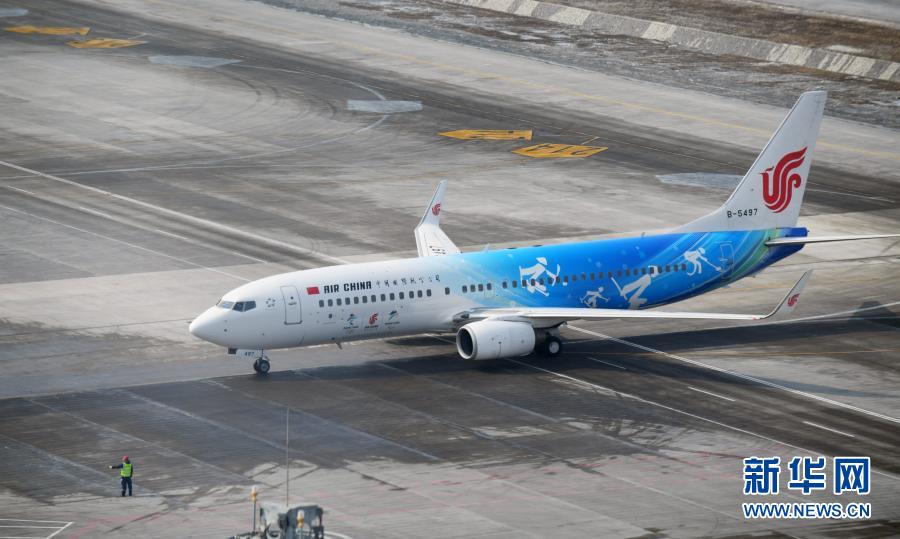 3月4日,冬奧主題彩繪飛機“冬奧運動號”飛抵長春龍嘉國際機場。