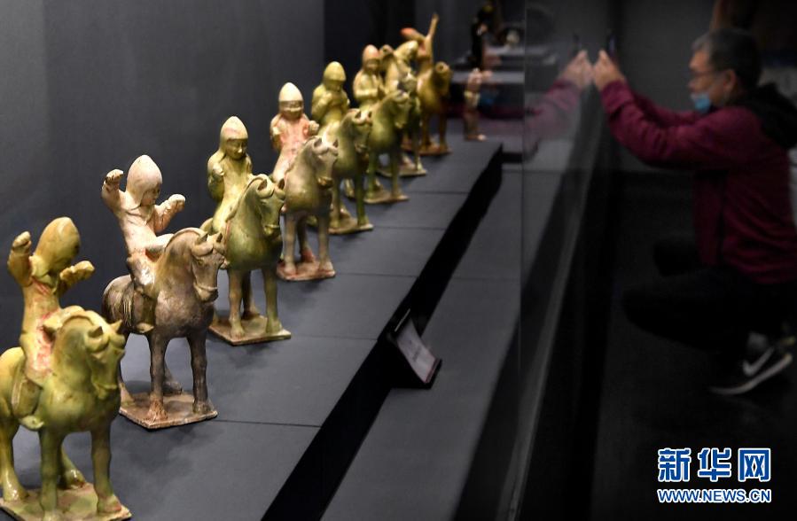 3月8日,參觀者在“太平有象——漢唐樂舞展”上拍攝展品。新華社記者 李安 攝
