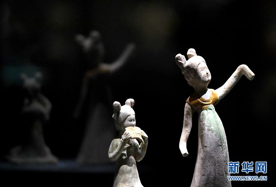 這是“太平有象——漢唐樂舞展”上展出的展品《三彩樂舞俑》(3月8日攝)。新華社記者 李安 攝