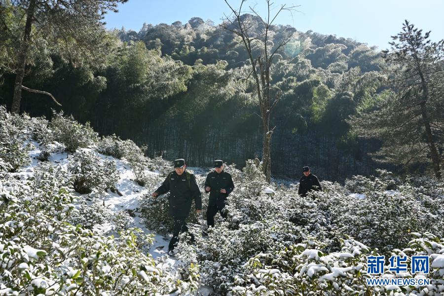 1月8日,工作人員雪后在武夷山國家公園桐木關附近巡山。新華社記者 姜克紅 攝