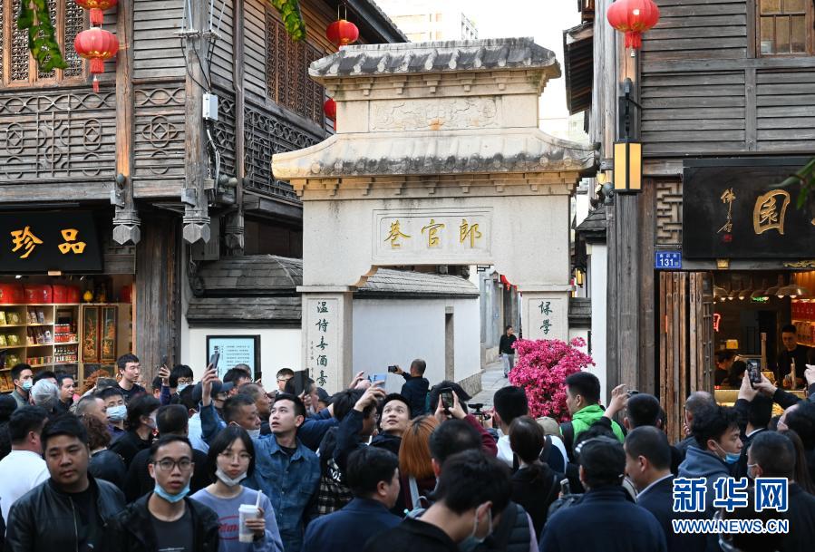 3月24日,游客在福州三坊七巷的郎官巷前拍照。 出生于閩江水畔福州的嚴(yán)復(fù)是中國(guó)近代啟蒙思想家、翻譯家、社會(huì)改革家和教育家。嚴(yán)復(fù)故居位于中國(guó)歷史文化街區(qū)——福州三坊七巷的郎官巷,該故居現(xiàn)辟為展廳,圖文并茂介紹嚴(yán)復(fù)的人生經(jīng)歷。新華社記者 林善傳 攝 |