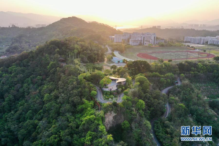 夕陽映照下的福州福山郊野公園祈福臺附近春色(3月24日攝,無人機照片)。