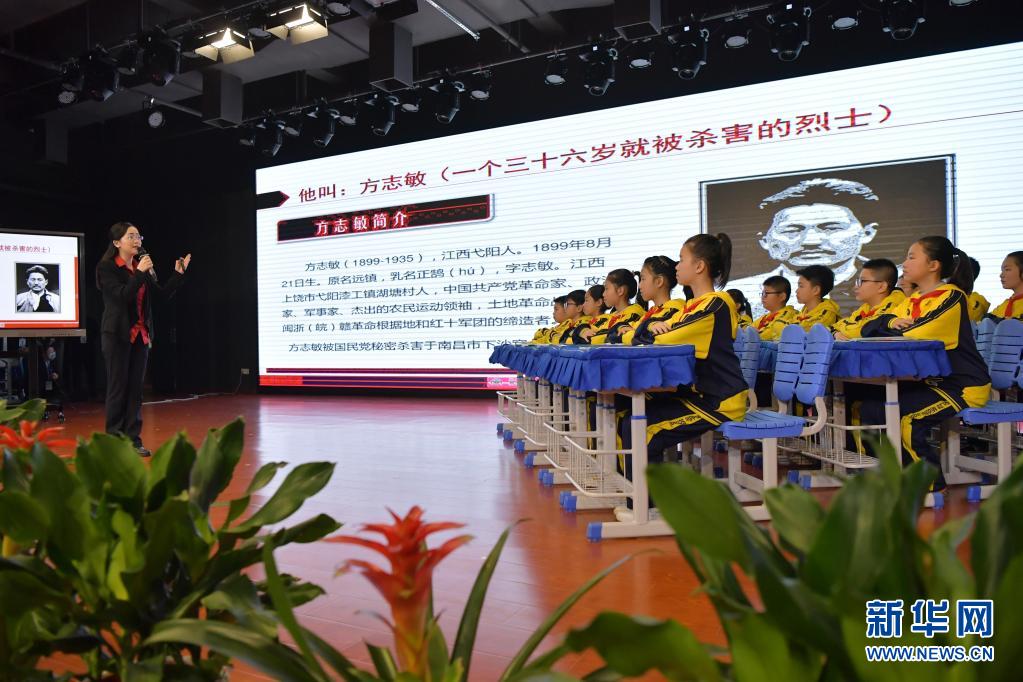 當日,江西南昌市二十八中教育集團灣里實驗學校舉行黨史教育進校園主題活動,通過思政課、歌舞、主題朗誦等活動,向學生普及黨史知識。