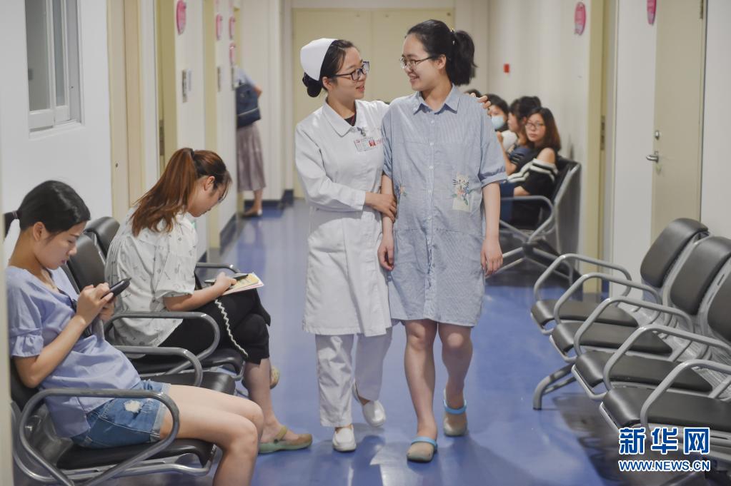 2018年6月12日,福建省婦幼保健院產科門診護士引導一位通過手機預約產檢的孕婦就醫。新華社記者 宋為偉 攝
