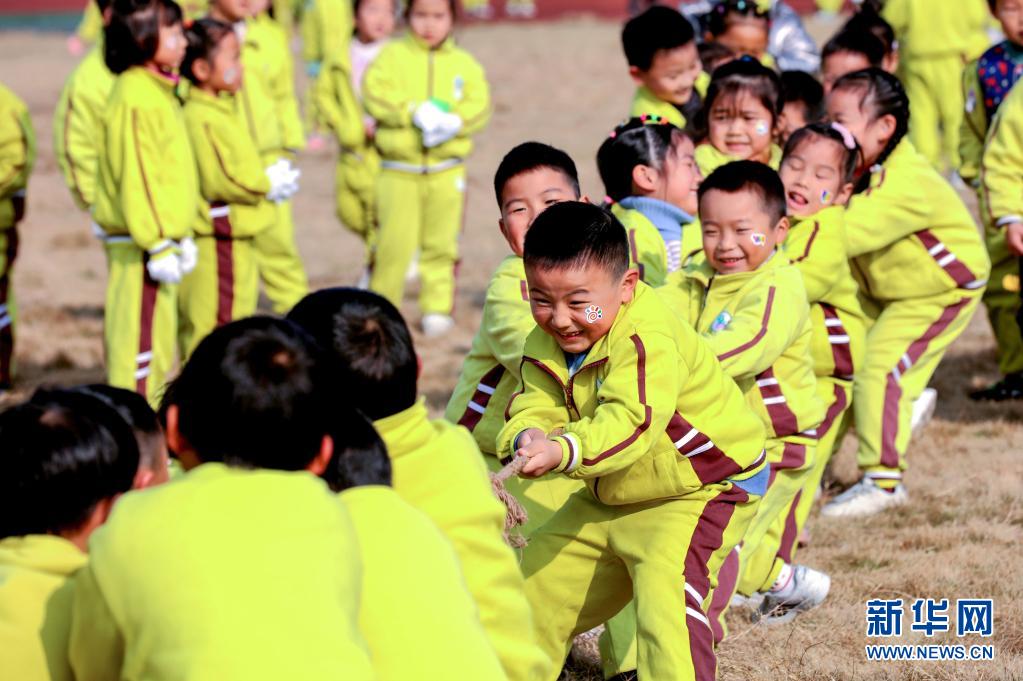 2020年12月25日,浙江省湖州市長興縣洪橋鎮中心幼兒園的孩子參加拔河游戲。新華社記者 徐昱 攝 |