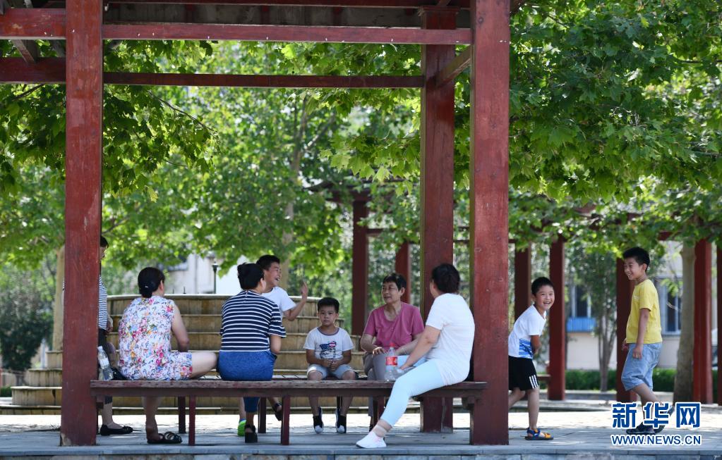 2020年7月7日,天津市西青區精武鎮付村富家灣小區的居民在涼亭休息。新華社記者 李然 攝