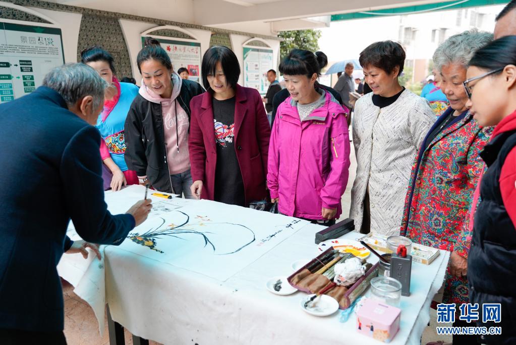 2018年10月15日,在湖南省長沙市,快樂老人大學科大景園校區繪畫班班長多文武為社區居民現場作畫。新華社記者 張笑宇 攝