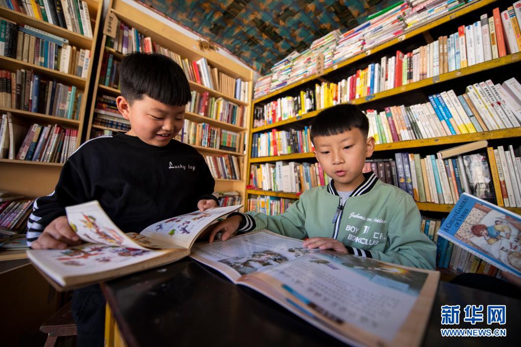 2021年4月18日,小朋友在山西省大同市靈丘縣東窖村大學蜂鄉村圖書館內看書。新華社記者 楊晨光 攝