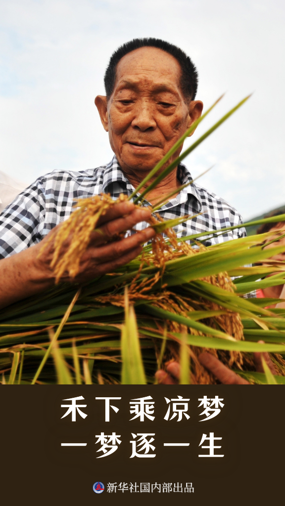 新華社長沙5月23日電題:禾下乘涼夢 一夢逐一生——懷念袁隆平 新華社記者袁汝婷、劉良恒、周勉 5月22日,一位91歲的老人走了。 湖南長沙,中南大學湘雅醫院門診樓前,三捧青翠的稻束靜靜矗立。不知是誰,采下老人畢生為之奮斗的夢,向他祭獻。 靈車過處,人們夾道相送; 汽笛聲聲,祝他一路走好。 一顆稻種,填得滿天下糧倉。 千言萬語,道不盡一生故事。 他以祖國和人民需要為己任,以奉獻祖國和人民為目標,一輩子躬耕田野,腳踏實地把科技論文寫在祖國大地。 老百姓把袁隆平刻進自己心里。