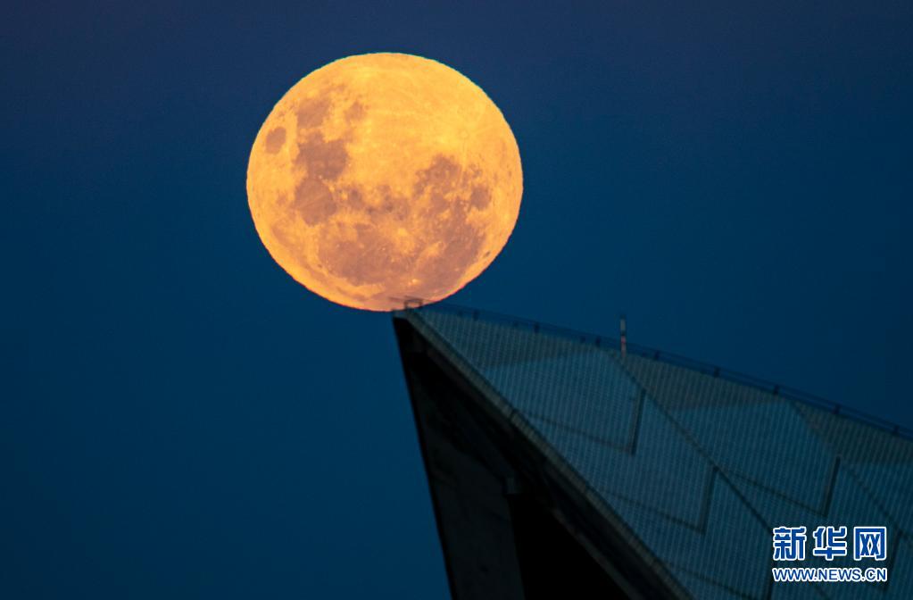 這是5月26日拍攝的澳大利亞悉尼歌劇院一角和剛剛升起的“超級(jí)月亮”。