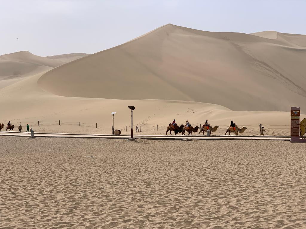 游客在張掖七彩丹霞景區拍照留念。新華社記者李杰攝 甘肅擁有的大漠、戈壁、雪山、湖泊、草原、花海等景觀,是西北自然風光的充分詮釋。張掖七彩丹霞、敦煌鳴沙山月牙泉、莫高窟、嘉峪關關城等絲路美景,也成為熱門的旅游自駕打卡點和旅行團必推地。