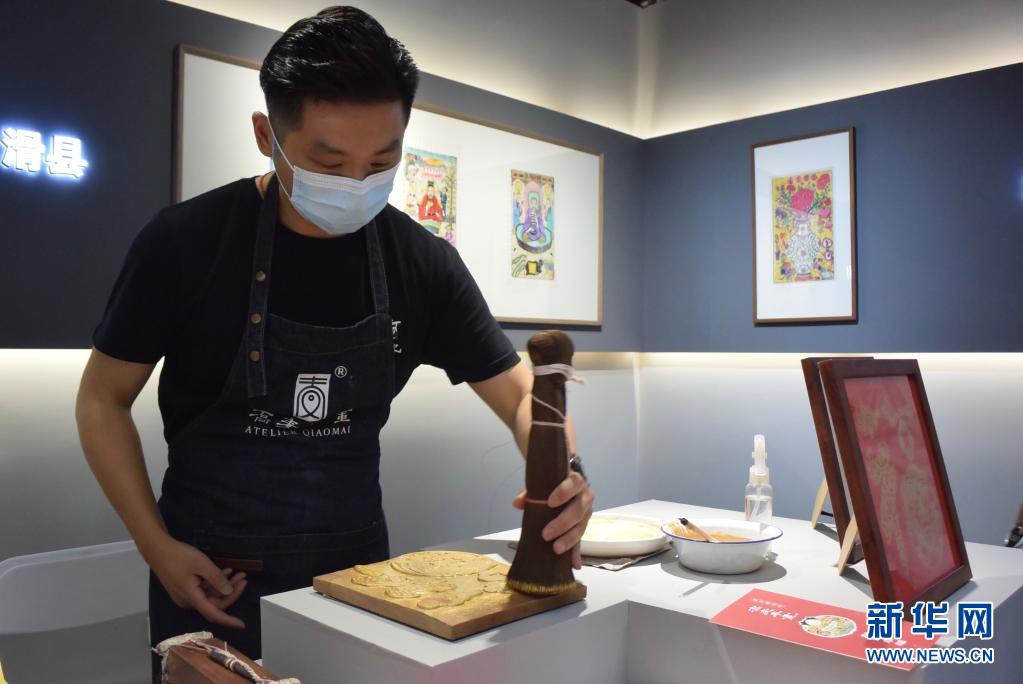 6月10日,在“運河記憶·紅色傳承”主題展上,非物質文化遺產傳承人現場展示江蘇桃花塢木版年畫制作技藝。