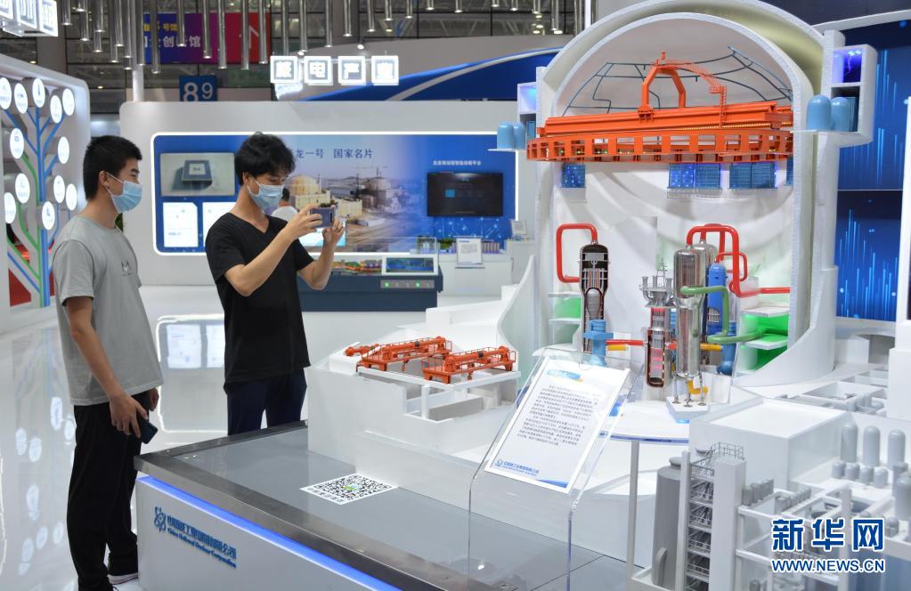 6月18日,在第十九屆中國·海峽創新項目成果交易會上,參觀者在了解華龍一號核電機組技術。