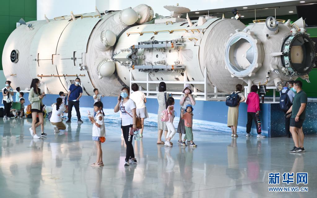6月19日,不少家長帶著孩子來到位于北京市朝陽區的中國科學技術館,參觀“天和核心艙”結構驗證件實物,了解中國空間站相關知識。新華社記者 陳鐘昊 攝